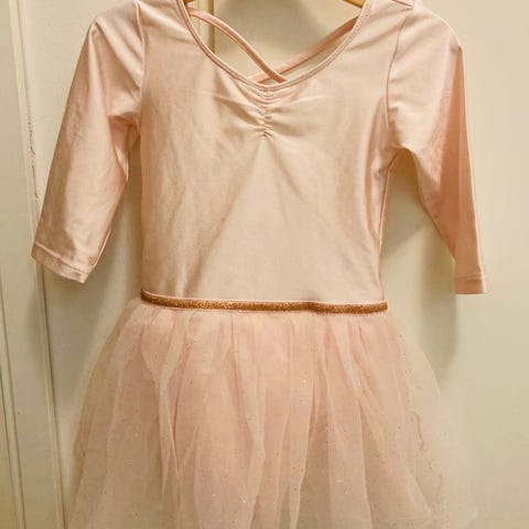 Lasten tanssipuku koossa 116, väriltään musta ja pinkki. Puvussa on pitkät hihat ja koristeena valkoiset koristekivet etupuolella. Materiaali joustava, sopii tanssiharjoitteluun ja esiintymiseen. Puvussa on napitus lahkeensuissa helppoa pukeutumista varten.