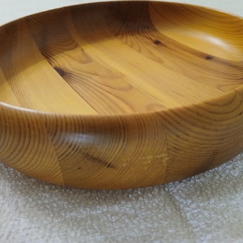 Männystä sorvattu puuastia, halkaisija 26 cm, korkeus 6 cm