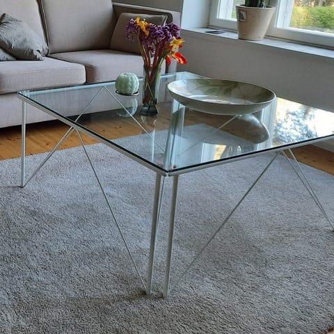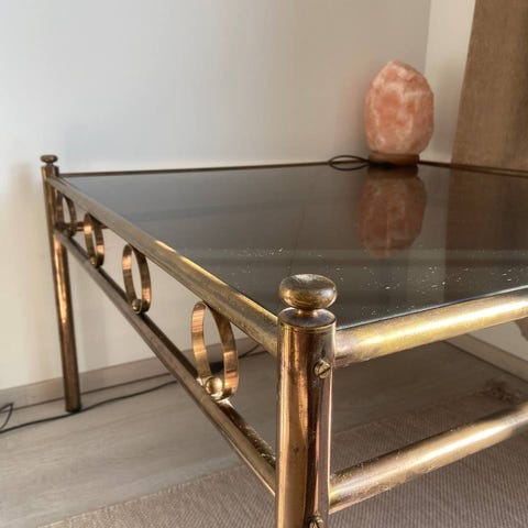 Lasipöytä messinki jaloilla
