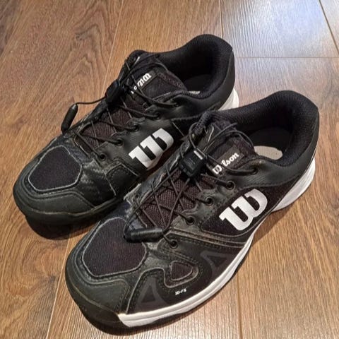 Myydään varsin hyvässä kunnossa olevat siniset Wilson RushPro Ace tenniskengät koossa 38 1/3. Yhden lapsen yhden kauden käyttämät ja siten hyväkuntoiset vielä seuraavalle pelaajalle. Nouto Espoon Leppävaara/Vallikallio tai postitus ostajan kustannuksella. 15€.