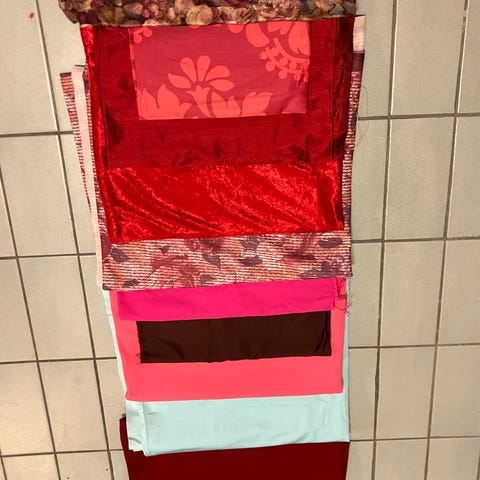 Joustavia sekä joustamattomia kankaita. Marimekon raitakangasta, villaneulosta, trikoota samettia ym....Koko satsi 80e+pk