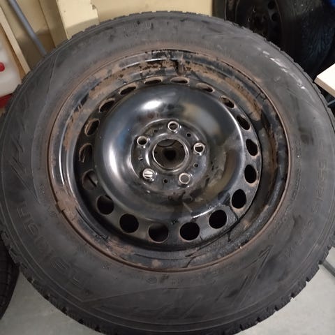 Pinkit peltivanteet nypityillä nastoilla ei mitkään parhaat kumit mutta ajaa viä ens kesän tai si vaikka peltoautoon!