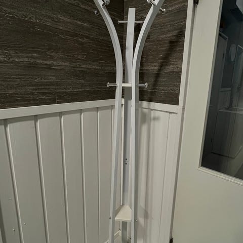 Valkea kaikinpuolin ehjä ja jämäkkä pikku naulakko. Syvyys 9cm . 60cm leveä.