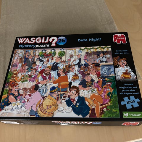 Wasgij Mystery Puzzle 8 The Final Hurdle! 1000 palan palapeli, jossa palapelin kuva koostuu siitä, mitä tapahtuu seuraavaksi. Kaikki palat tallella.