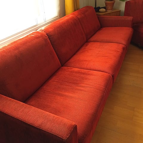 Martelan kaksi punaista moduulisohvaa. Myydään yhdessä ja hinta on molemmista yhteensä.