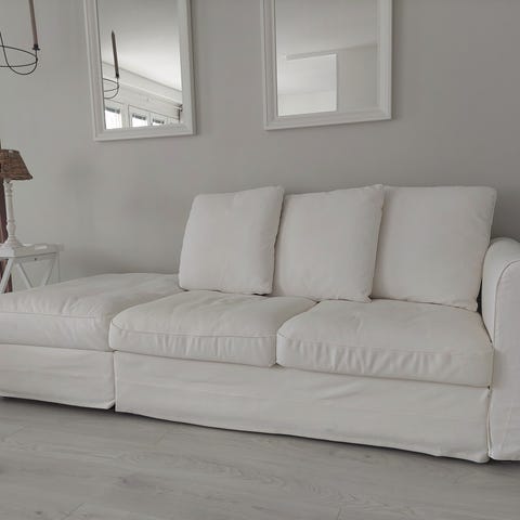 Käytön jäljet kuvissa ja mitat yhdestä sohvasta. Voidaan käyttää yhdessä tai erikseen.