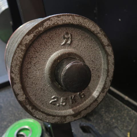 Kuvasta näet miten minulla on ollut 0.5, 1kg, 1.25kg ja 2.5kg kiekot.