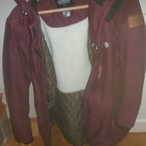 Myydään hyvässä käytetyssä kunnossa oleva naisten Ahkka-merkkinen talviparkatakki, koko 46. Väri meleerattu harmaa. Irrotettava karva hupussa. Siisti ja ehjä. Säilytyksestä rypyssä.