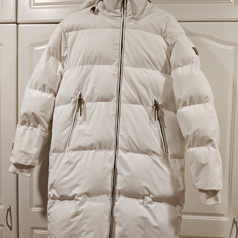 Icepeak untuvatakki, naisten koko 38. Takissa on vetoketjutaskut ja irrotettava huppu, jossa tekoturkisreunus, joka irroitettava. Takki soveltuu lasketteluun lumilukkoineen ja kylmemmille ilmoille koska on hyvin lämmin untuvatakki.