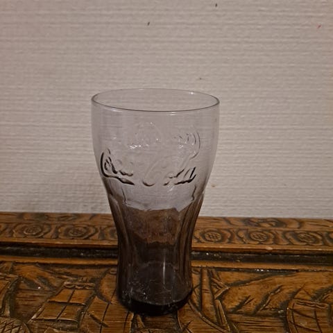 Coca-Cola juomalasi, läpinäkyvä materiaali. Lasin muotoilu sisältää Coca-Cola-logon ja on tarkoitettu juomien tarjoiluun.
