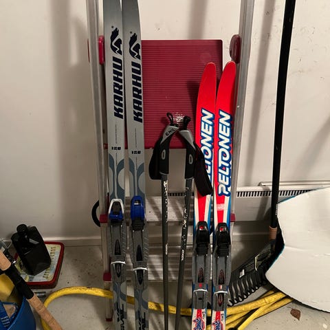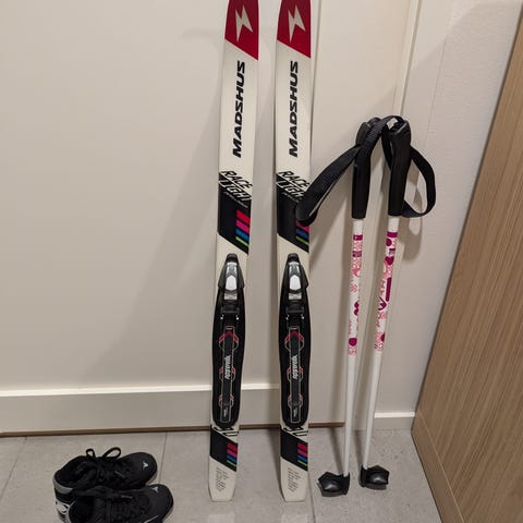 Hiihtosetti lapselle: Karvapohjasukset 120cm, monot 33 ja sauvat