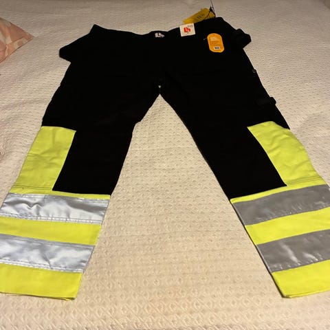 Muotoillut polvet parempaan istuvuuteen ja joustavuuteen. Vahvistukset polvissa ja reisissä parempaan kestävyyteen sekä vähentää heijastuksia käytettäessä koneita ja ajoneuvoja.