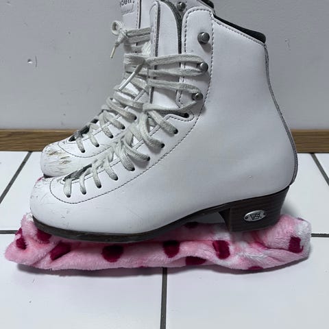 Riedell Olympia Junior luistimet, koko 5,5. Leveys Med. Tukevat, ei murtumia. Ei juurikaan naarmuja tai muita kulumisen jälkiä. Olleet käytössä yhdellä muodostelmaluistelijalla..