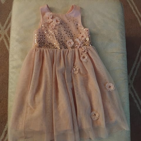 Hyvässä kunnossa oleva juhlamekko kokoa 104. Edessä tyllissä yksi langanveto, kuvassa, mutta ei näy kovin hyvin. Taloudessa ei eläimiä, emmekä käytä hajusteita.