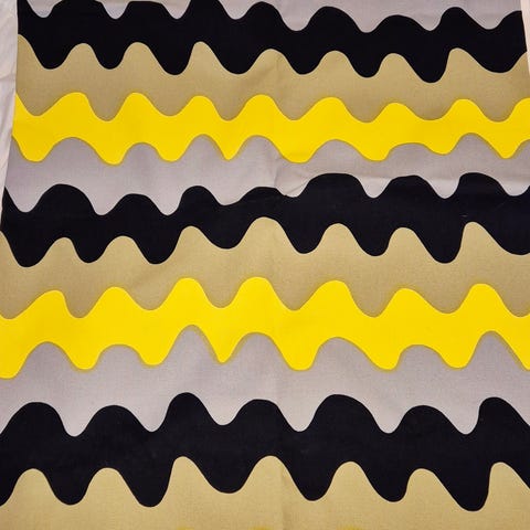Myydään 120cm, mustavalkoista ”Joonas” markiisikangasta. Suunnittelija Maija Isola 1964. Kangas on käyttämätön ja puhdas.