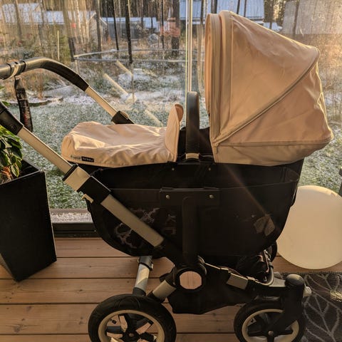 Myyntiin hyvin kahdella lapsella palvelleet donkeyt 2017 mallia. Kuvissa näkyy kaikki mukaan kuuluva. Venyvät tupliksi kun ostaa toisen istuinkehikon. Sadesuoja ei ole bugaboon, mutta hyvin meillä näissä toiminut ja saa hiukan vedettyä suojaa sivukorin päällekkin. Mukitelineestä toiselta puolelta katkennut pala, ajaa asiansa silti. Vaunut säilytetty aina lämpimässä. Päälliset kerran pesty hajusteettomalla pesuaineella. Meillä asuu koira ja kissa (eivät ole olleet vaunuissa).