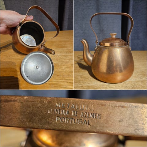 Vintage kuparinen kahvipannu jota kutsutaan tyypillisesti nimellä cezve (turkiksi) tai briki (kreikaksi). Sitä käytetään perinteisesti turkkilaisen tai kreikkalaisen kahvin valmistamiseen. Ajanpatinaa on reilusti kuten kuvista huomaa :)