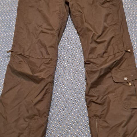 Housuissa pientä jälkeä lahkeissa. Eivät ole purkautumassa. Housuista löytyy koukut monoihin jotta eivät lähde kääriytymään sekä reisien kohdalla tuuletusaukot vetoketjuilla.