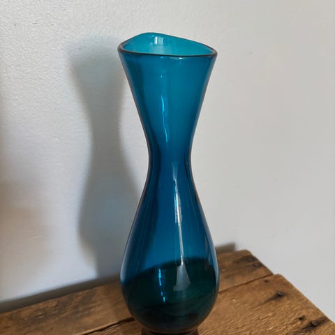 Hyväkuntoinen ja puhdas, Riihimäen Lasin sininen karahvi korkilla.