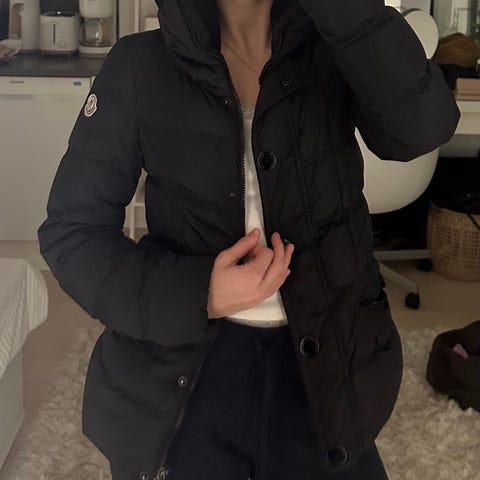 Moncler Talvitakki mustassa värissä, naisten koko L/4. Takki on valmistettu kiiltävästä materiaalista ja siinä on irrotettava huppu, jossa on karvareunus. Takissa on vetoketjullinen ja nepparikiinnitys edessä sekä useita taskuja. Sopii kylmiin säihin ulkoiluun ja arkipäivän käyttöön.