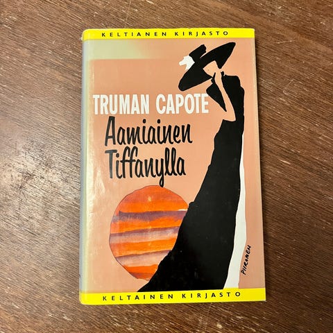 Tammi 1981, 3. painos. Keltainen kirjasto 80. Alkuteos Breakfast at Tiffany's, suomentaneet Inkeri Hämäläinen ja Kristiina Kivivuori. Kovakantinen, 175 sivua.
