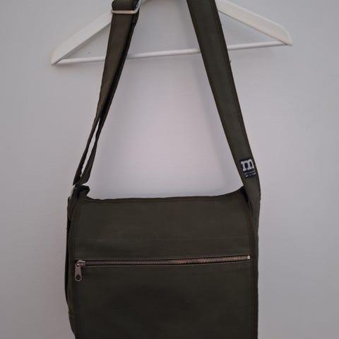 Marimekon vaaleansininen urbaani -laukku etsii uutta olkapäätä. Käytön jälkiä havaittavissa, mutta yleisilmeeltään siisti, pesty. Huolellisemmalla pesulla varmaan lähtee puhtaammaksi.