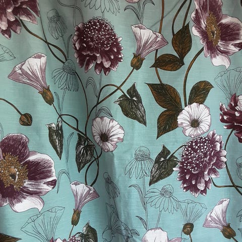Vain kerran ikkunassa olleet eläväpintaiset puuvilla verhot.