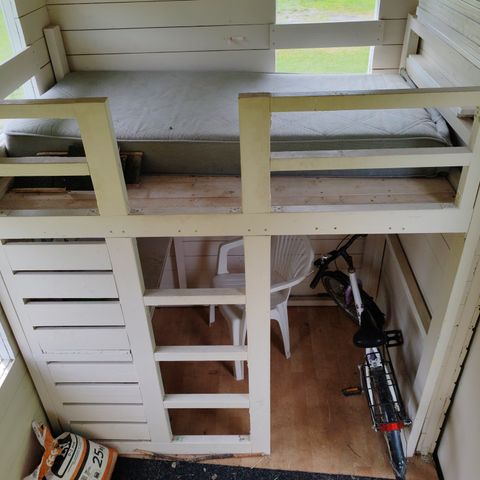 Läjä puutavaraa puretusta itsetehdystä parvisängystä. Ruuveja ja kulmarautoja kiinni. Jos ei muuta ni polttopuuksi. Tuukko hakeen?