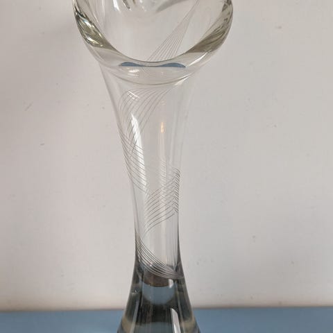 Ehjä ja kaunis -60 luvun Humppilan kalla 355 maljakko. Signeerausta en löytänyt. Paino 539 g, korkeus 22 cm ja pohjan leveys 6.5 cm. Nouto tai postitus.