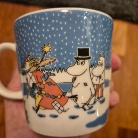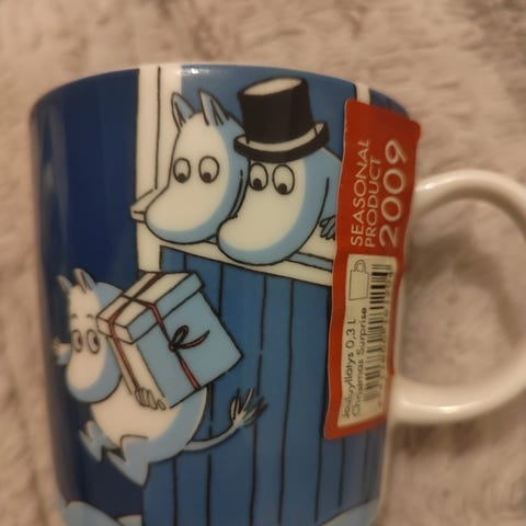 Vitriinissä säilytetty hyväkuntoinen muumimuki Joulu 2004-2005