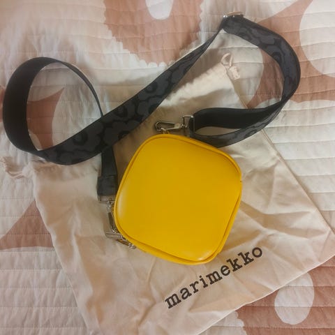 Pirteän keltainen, hyväkuntoinen, iso marilaukku Arkkitehti. Posti lisätään hintaan.