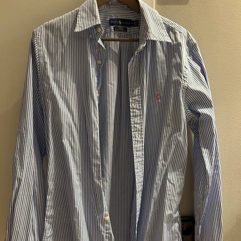 Ralph Lauren sininen miesten kauluspaita, koko M. Pitkähihainen paita, jossa napillinen kaulus ja nappikiinnitys edessä.