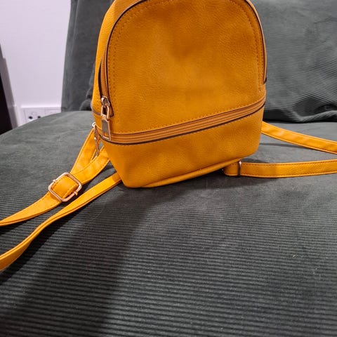 Pienikokoinen nahkareppu.