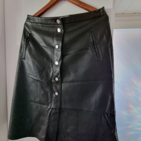 Mango Genuine Leather uusi laput kiinni, oikeata mokkanahkaa oleva hame. Edessä nappikiinnitys.