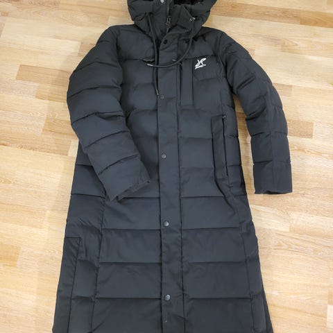 Viime talvena muiden takkien ohella käytetty untuvatakki. Kuva vääristää hieman sävyä, kaunis lila väri luonnossa. Kainalo-kainalo n. 52 cm, joustaa hieman tarvittaessa. Vastaa mielestäni M-L -kokoa.