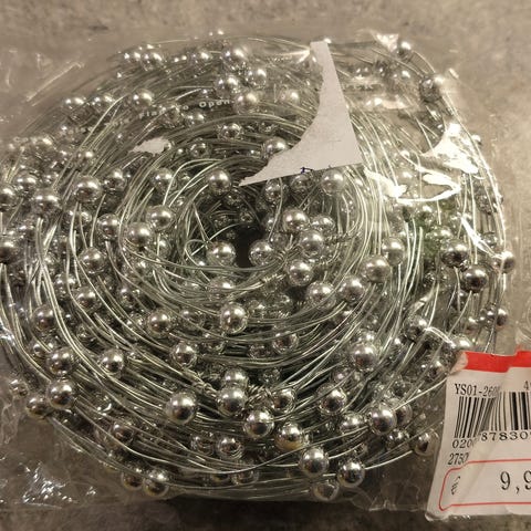 Sininen Vintage koristepunos hopean värisillä tähdillä. Punoksessa metallilanka keskellä, joka tekee punoksesta jäykemmän. Litteä muoto, leveys n. 3 cm. Yhteensä n. 30 m.