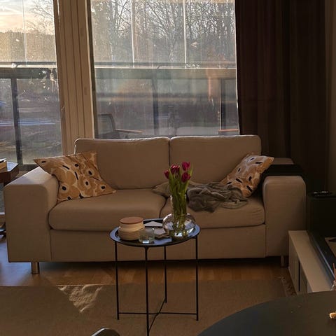 HUOM! Onnistuu kuljetus Seinäjoen sisällä (max 10km keskustasta) ostajalle mutta paikanpäällä ostaja huolehtii omat kantajat sohvalle. On painava!