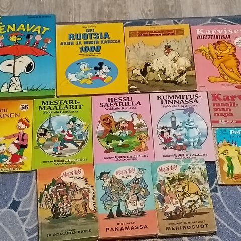 Kirjat ovat melko hyvässä kunnossa. Joissakin on siististi teipattu sivuja.