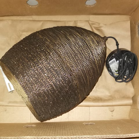 Ruskea metallinen kattovalaisin. Polttimot paikoillaan ja mukaan saa vielä pari varapolttimoa. Halkaisija n. 40cm