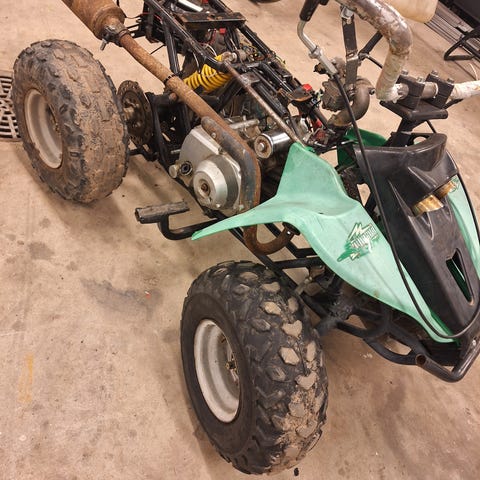 Mönkkäri jäänny seisomaan jokunen vuosi sitten ajo kuntosena..nyt vähä lokarii rikki ja en koittanu ees käyntiin.vaatii varmasti kaasarin putsausta yms...vaihteet yks eteen ja pakki.. projektiksi..