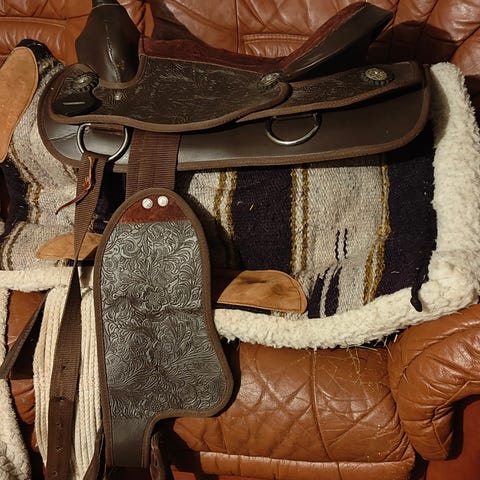 Kaikkiin selkiin sopiva ”satula”. Tämä kahdesta koosta isompi, eli pikku ponia isommalla ratsulla käytettäväksi. Mukava ja tukeva istua, jopa ilman lampaan karva- päällystä. Mukaan lyhyt satulavyö 50cm, ja kylki suojat. Käytetty huovan kanssa, joten kunto moitteeton. Lampaan karva- päällys lähes käyttämätön. Postitus kuluja vastaan.