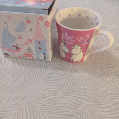 Yamaka, the Story of Moomin valley muumi muki, 0,4 L, ø 9 cm, korkeus 9 cm. Muumipappa ja Tuutikki. Kunto hyvä.