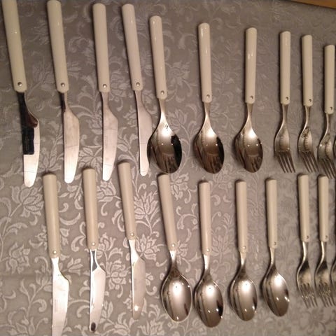 Harri koskisen suunnittelema Hackman Teräsaterimet koostuvat 4 veitsestä ja 4 haarukasta. Aterimet on valmistettu ruostumattomasta teräksestä ja soveltuvat käytettäväksi keittiössä ja ruokailutilanteissa. Moderni ja yksinkertainen muotoilu.