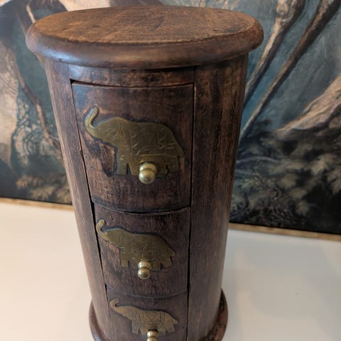 Myydään upea, käsinkirjoittu ja Intiassa valmistettu seinälokerikko, jossa on näyttävä käsin tehty kirjailtu koriste. Täydellinen pikkutavaroiden säilytykseen niin kylpyhuoneessa, eteisessä kuin työhuoneenkin seinällä.Se tuo tilaan ripaus käsityön lämpöä ja persoonallista tyyliä.
