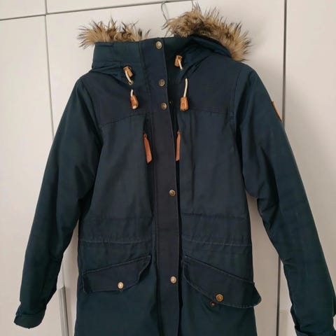 Fjällräven Nuuk naisten tosi lämmin talvitakki. Musta, koko S, käytetty S/M kokoisena. Uutena ostettu ja satunnaisesti käytetty, nyt ollut pidempään kaapissa (säilytetty sisällä). Siisti ja ehjä, vähän meikkivoidetahraa kauluksessa ja jotain pientä jälkeä voi olla, takkia ei ole pesty, jottei ominaisuudet kärsi. Ei voimakkaita tuoksuja/eläimiä.
