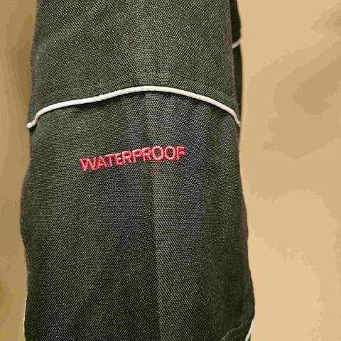 Orange County Choppers takki mustana. Takissa on useita kirjailtuja logoja ja tekstejä, kuten Orange County ja Choppers. Takki on suunniteltu miehille ja siinä on vetoketjullinen etuosa sekä useita taskuja.koko L