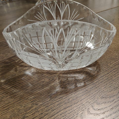 Kaunis, kirkas kristalli tarjoilulautanen.