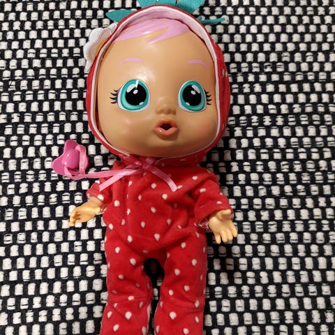 Cry Babies Tutti Frutti Ella. Tuoksuu mansikalle. Päällään söpö mansikkapyjama. Koko noin 25 cm. Nukke itkee kyyneliä, mutta rauhoittuu jos laitat tutin sen suuhun. Nouto/Postitus/Toridiili ja tuonti onnistuu Iisalmi/Kiuruvesi/Vieremä