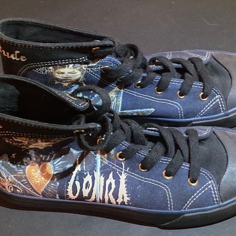 EMP Gojira-bändin hupullinen talvitakki, koko M. Siistissä kunnossa. Kissatalous, mutta huolella putsattu.