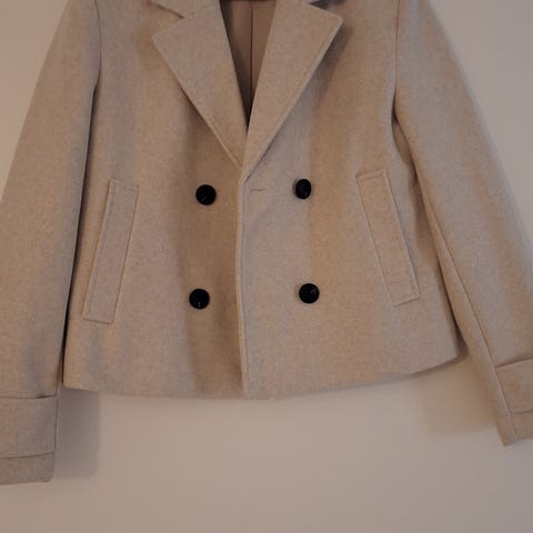 Onlyn beige kevyttoppis lyhyttä mallia, koko S. Hyvä käytetty kunto, en löydä moitittavaa. Materiaali polyesteri.